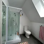 Les fenêtres offrent une vue sur le jardin. Un sèche-cheveux sont également à votre disposition.